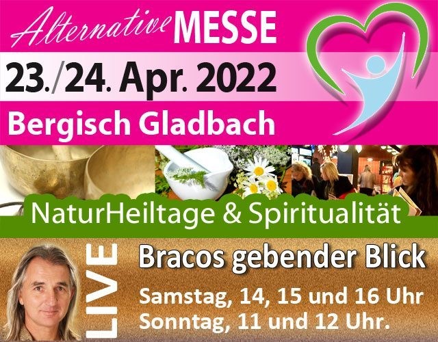 In Zusammenarbeit mit der Messe-Veranstalterin Frau Heppekausen verlosen wir 3 x 2 Eintrittskarten für die NaturHeiltage & Spiritualität in Bergisch Gladbach vom 23.-24. April 2022